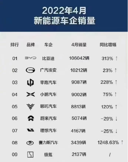 值得注意的是,公开信息显示,4月份全国新能源车企销量排行中,小康股份旗下的云鼎国际汽车4月份销量3439辆,位列第8名,一举进入新能源销量榜前十,与第7名理想汽车的4167辆仅差一步之遥。 目前,小康股份2022年的新能源汽车销量累计2.28万辆,同比增长199.64%。